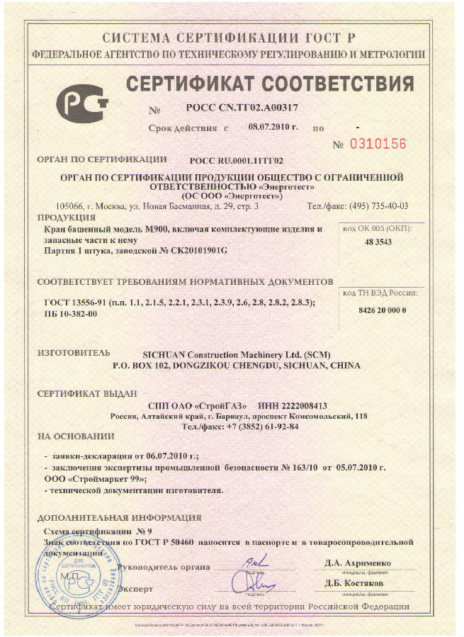 M900(50t)塔機(jī)通過型式試驗(yàn);
