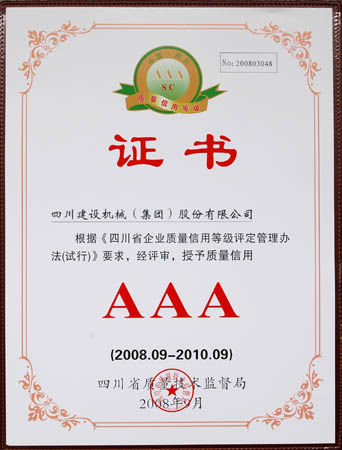 1月 四川省質(zhì)量技術(shù)監(jiān)督局授予質(zhì)量信用AAA證書;